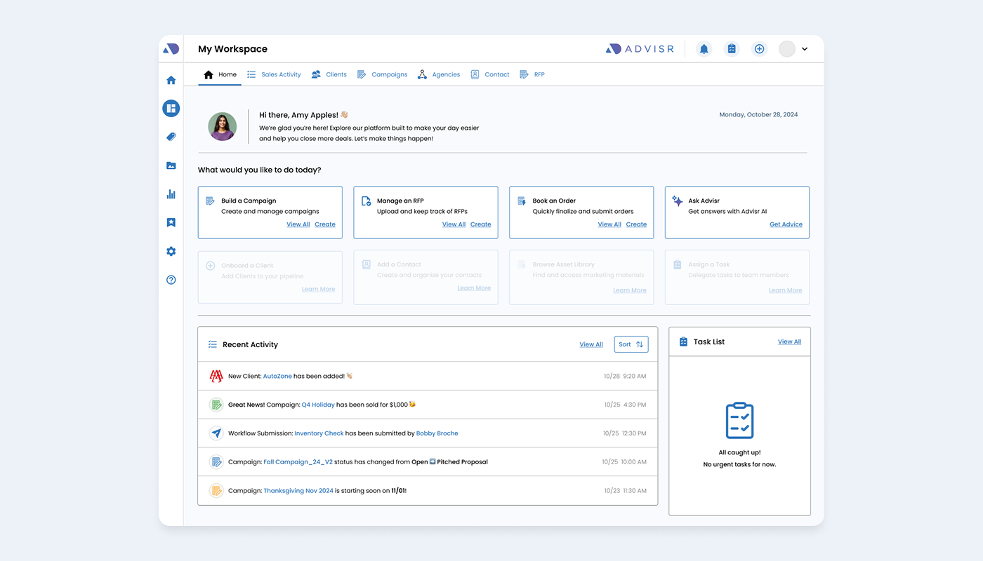 Over time, the homepage became outdated and underutilized. Instead of starting there, users defaulted to the Workspace page, where they could more easily track clients and campaigns.
