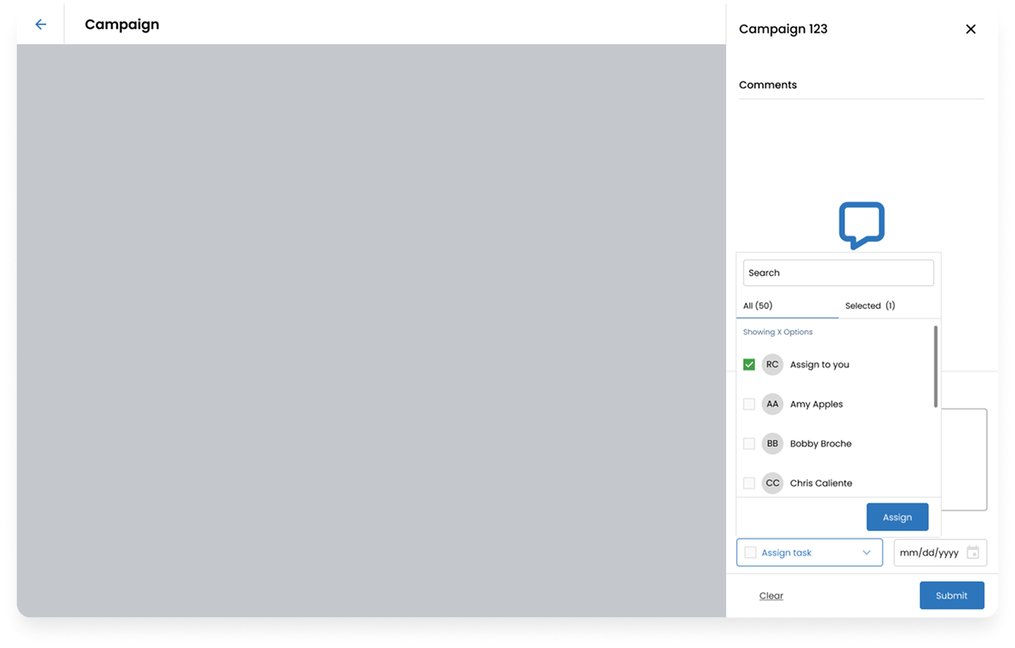 We introduced native commenting and task assignment within Campaigns, along with real-time notifications, allowing users to: