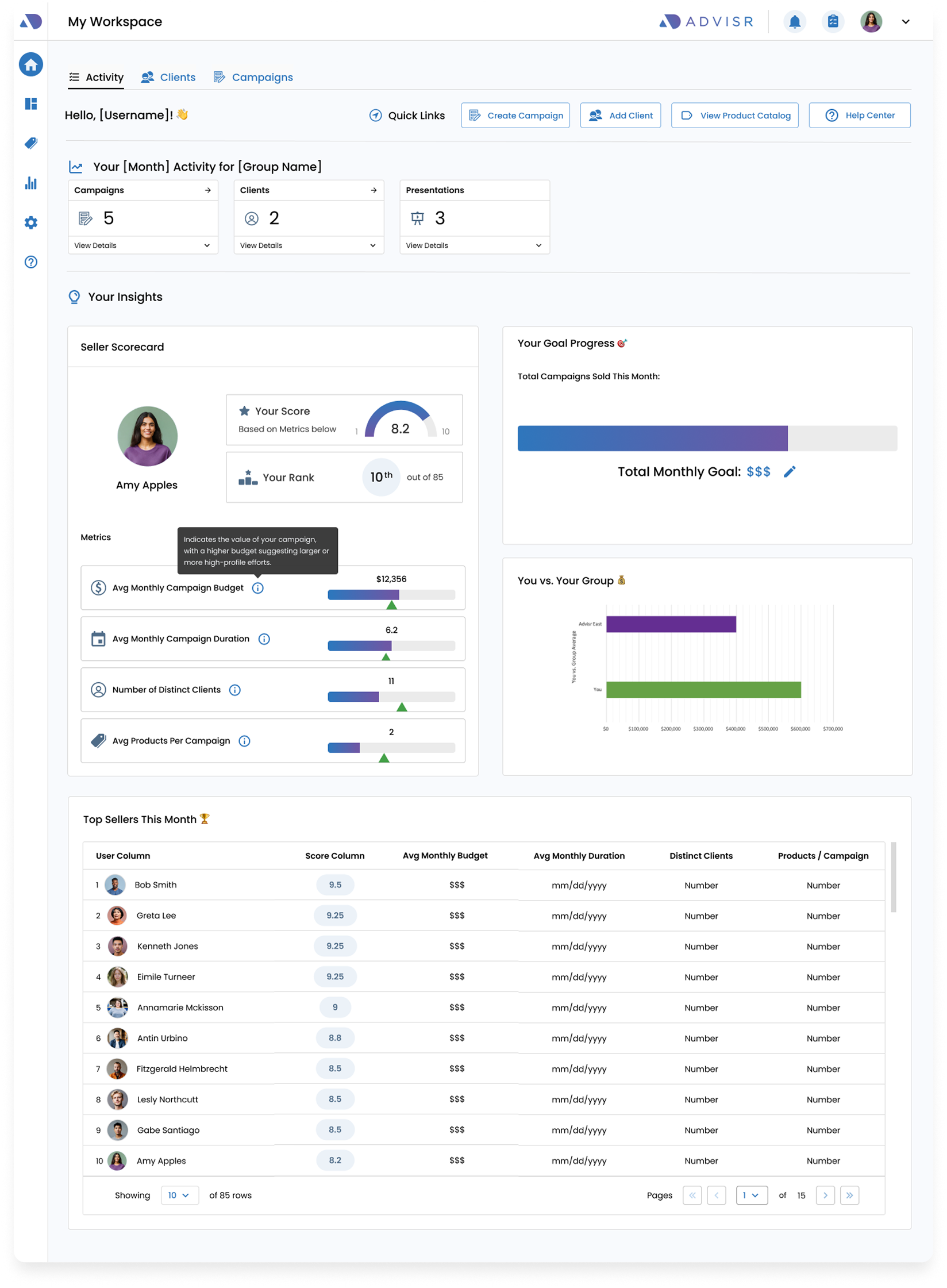 The feature provides Rep-level users with transparent, actionable performance insights, while gamification elements like badges and rewards keep them engaged.
