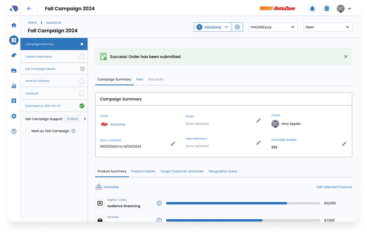 Once the user validates the budget allocation, they land on the Campaign Summary page where they can make additional updates if needed.